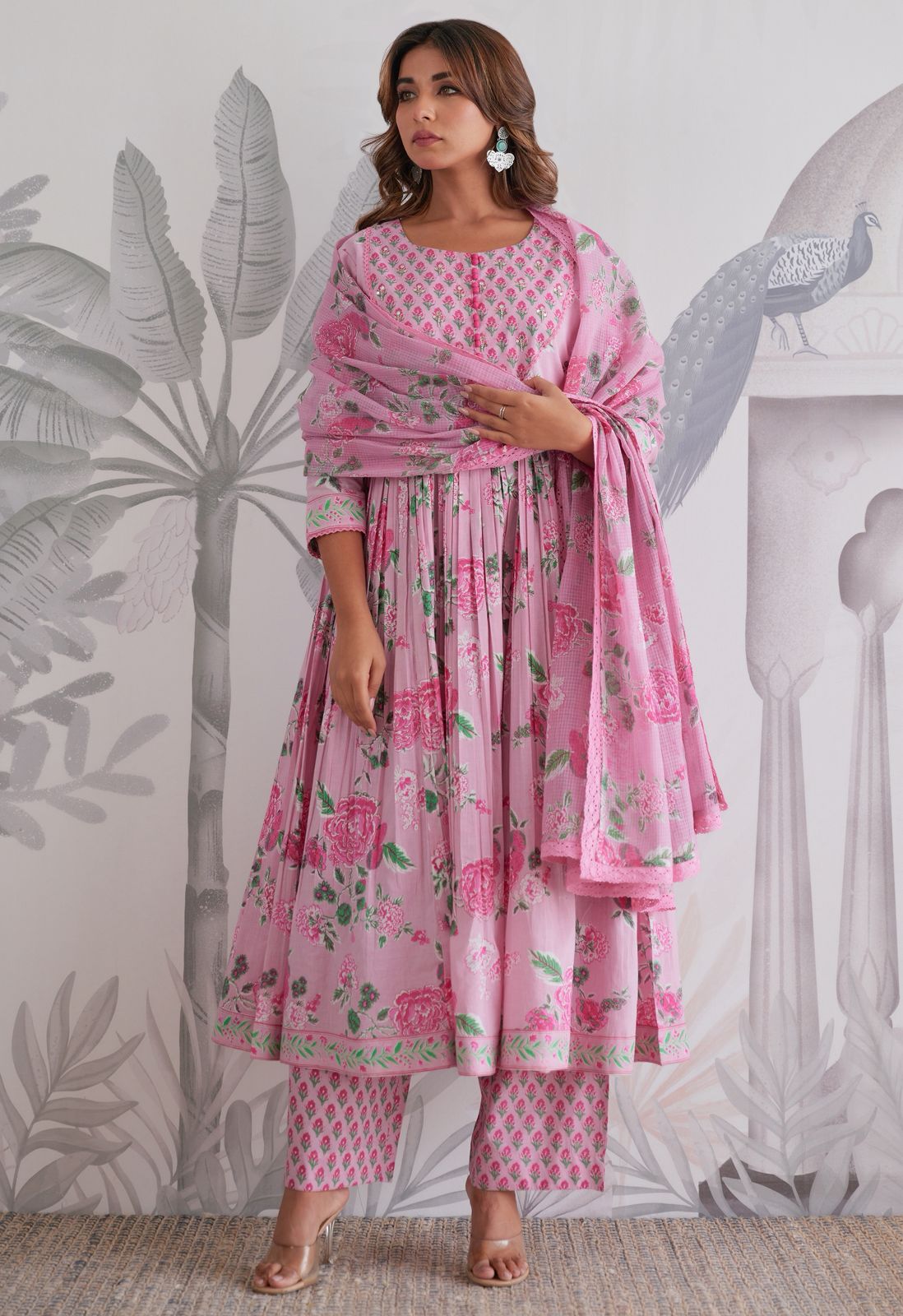 Beautiful pure cotton premium style jaipuri printed anarkali set.